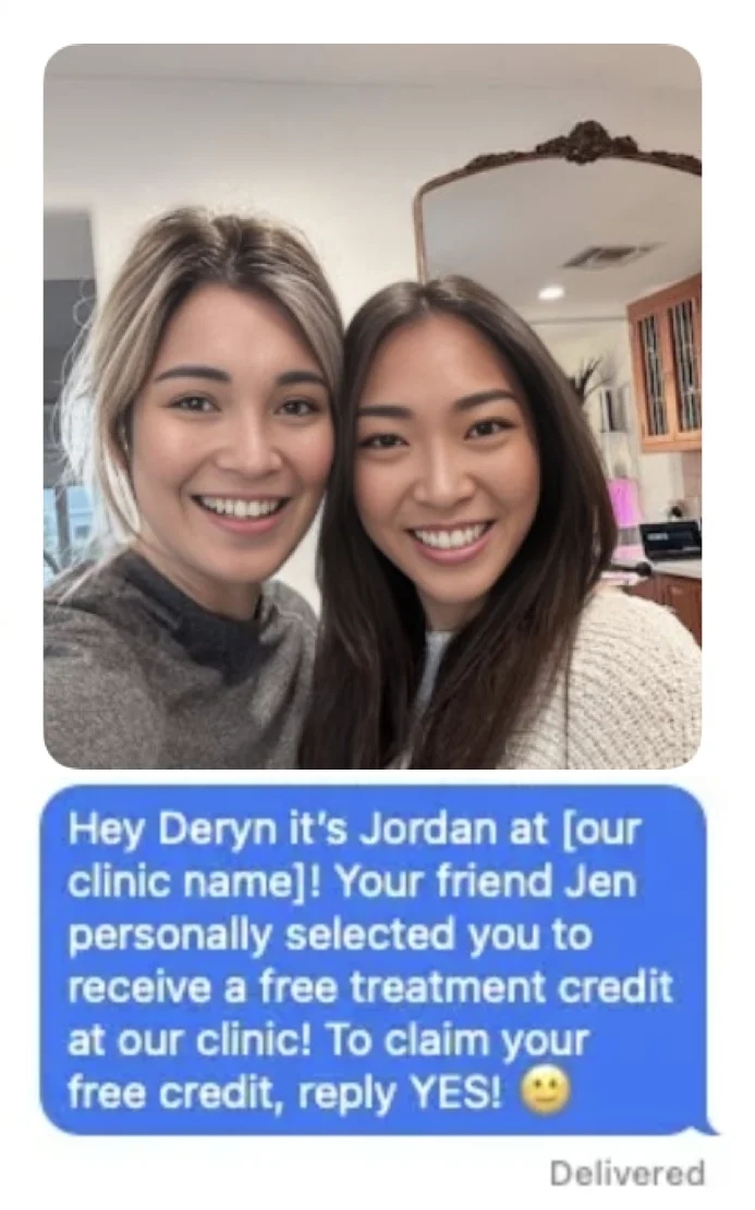 No one likes getting texts from strangers! 🙈 We'll include the selfie in the text we send to your friends. This makes the message a bit more personal and fun. You can see the type of message we send below!